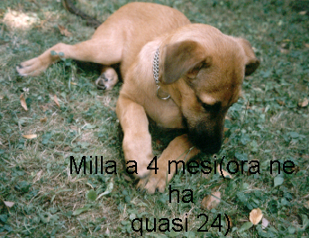 Ecco alcune foto estrapolate dagli album di foto.Vado orgoglioso della mia Milla ,cagnolina pastore belga Malinois...qui e' cucciolotta.Ora pesa 30 Kg ed ha un caratterino.......So che il caricamento della foto richiede un sacco di tempo(e' in formato bmp)....Daltronde secondo me ne vale la pena.Nota gli occhioni smarriti,le orecchiotte pendenti e l'aria da cucciolo...bellissima.La tenerezza che portano le foto di cuccioli e' notoria,e' usata pure dai giornalisti e dai pubblicitari per suscitare il massimo della attenzione e ispirare sentimenti di protezione.Che vigliacchi!!!La Milla vi saluta...caldamente. se vuoi una pagina simile a quella che ho costruito io vai sulwebspace? www.fortunecity.com